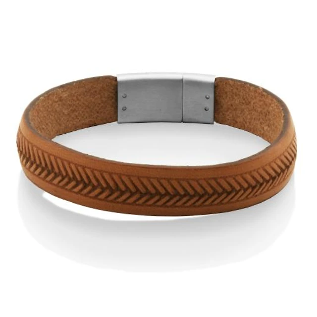 EFFY™ Collection Rectangle Tiger's Eye Rope Accent Brown Leather Bracelet in Sterling Silver