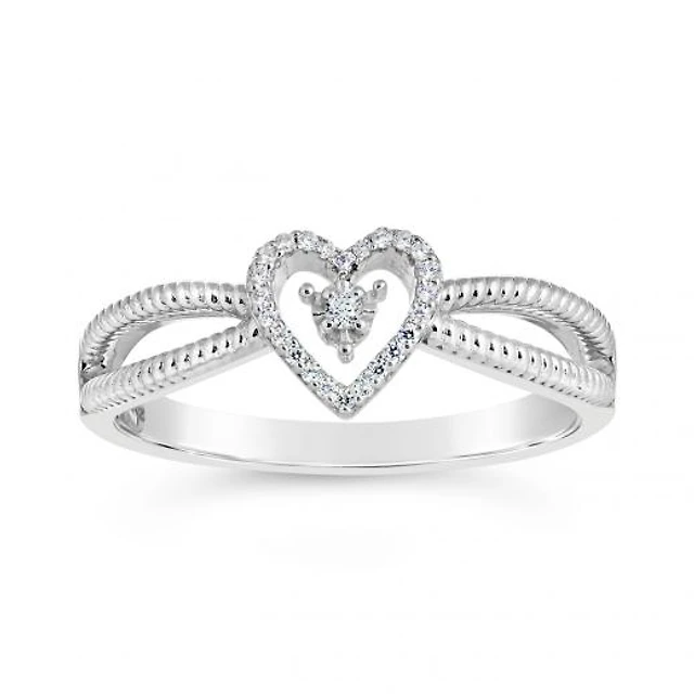 Sterling Silver 0.04CTW Diamond Heart Ring