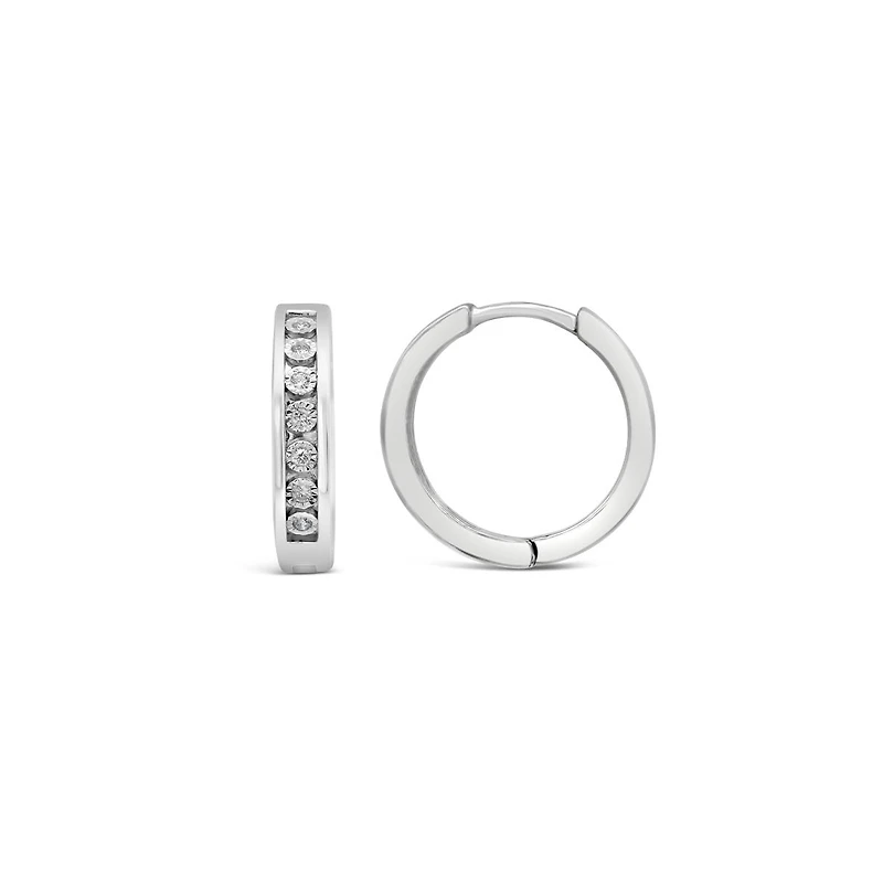 These petite hinged hoop earrings have 0.09ctw of sparkling illusion set diamonds. To finish off the look, the earrings are artfully crafted in shimmering sterling silver.