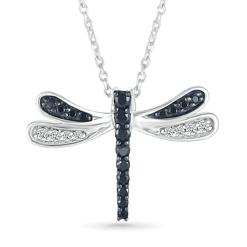 Sterling Silver 0.23CTW Black & White Diamond Dragonfly Pendant