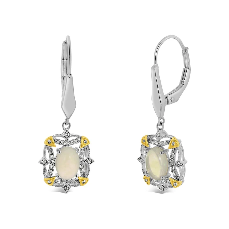 Sterling Silver 10K Yellow Gold Opal & 0.15CTW Diamond Earrings