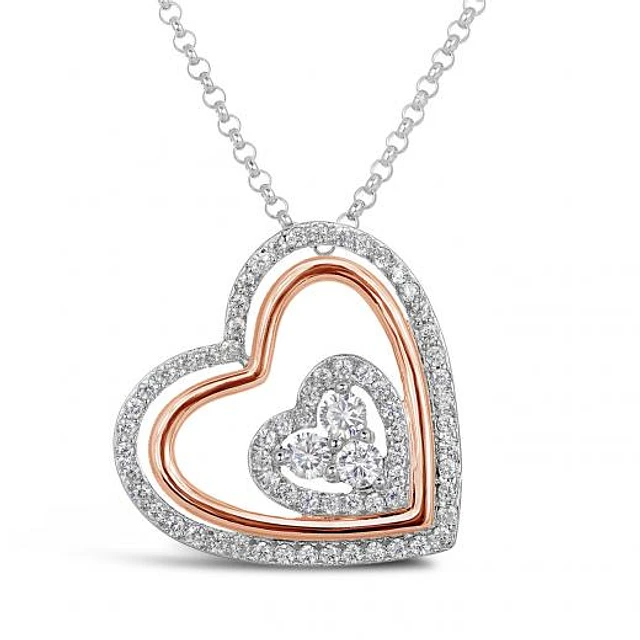 Sterling Silver 19" Cubic Zirconia Triple Heart Pendant with Rose