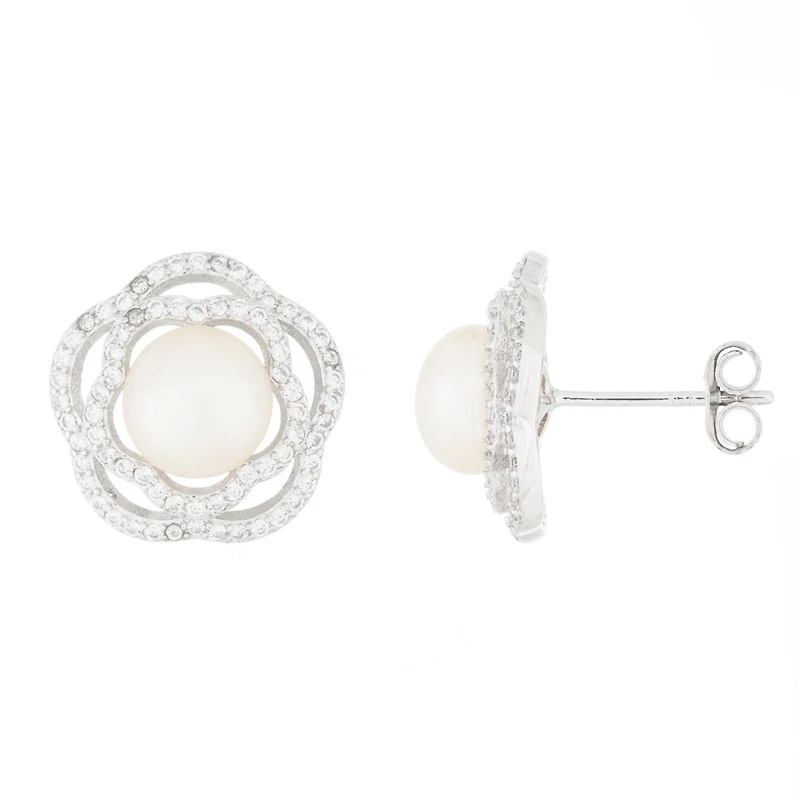 Sterling Silver 7-7.5mm White Freshwater Pearl Fancy Stud Earrings