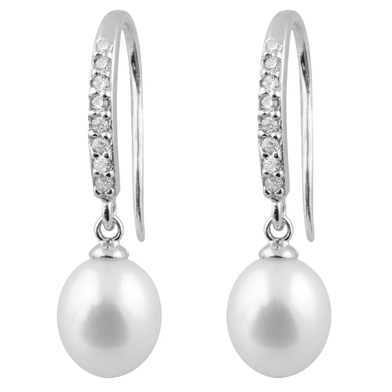 Sterling Silver 7-8mm White Freshwater Pearl & Cubic Zirconia Hook Earrings