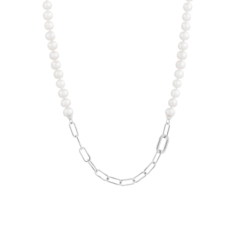 Large 8-9MM freshwater pearls mixed with chunky sterling silver links, create an elegant 22" necklace that has a feminine feel with a masculine look. Complete your style with this showstopping piece