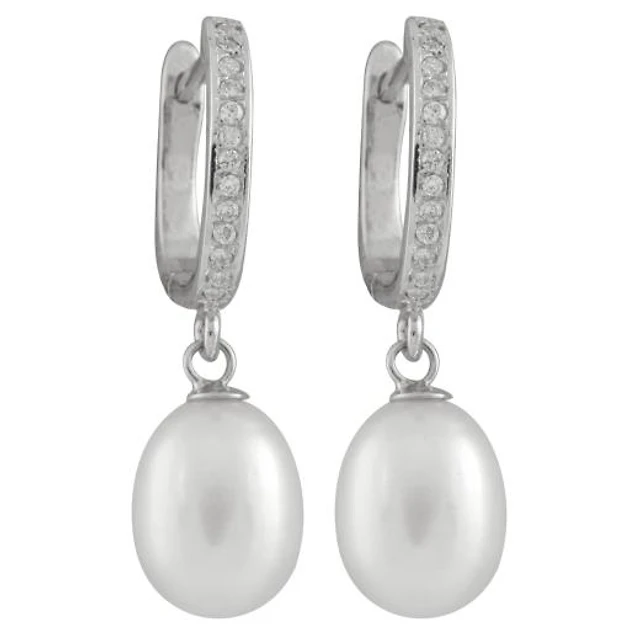 Sterling Silver 8-9mm Freshwater Pearl & Cubic Zirconia Earrings
