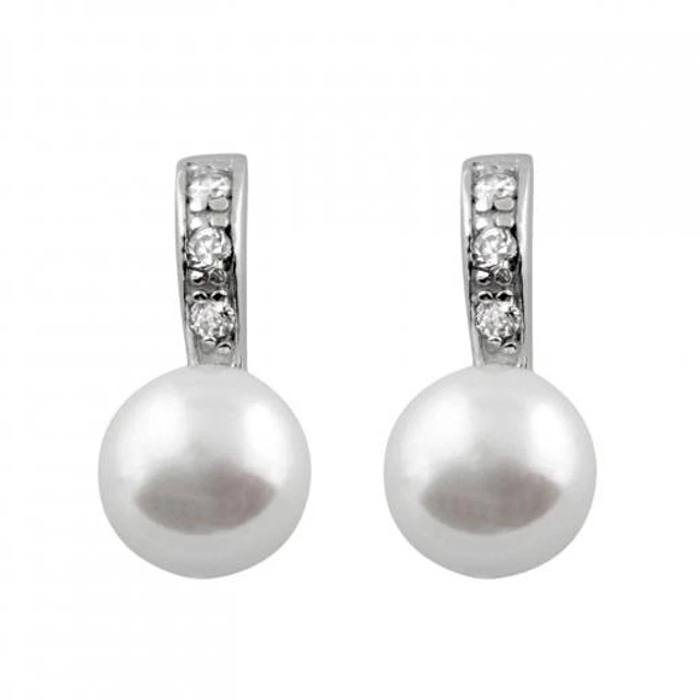 Sterling Silver 7.5-8mm White Freshwater Pearl Cubic Zirconia Earrings