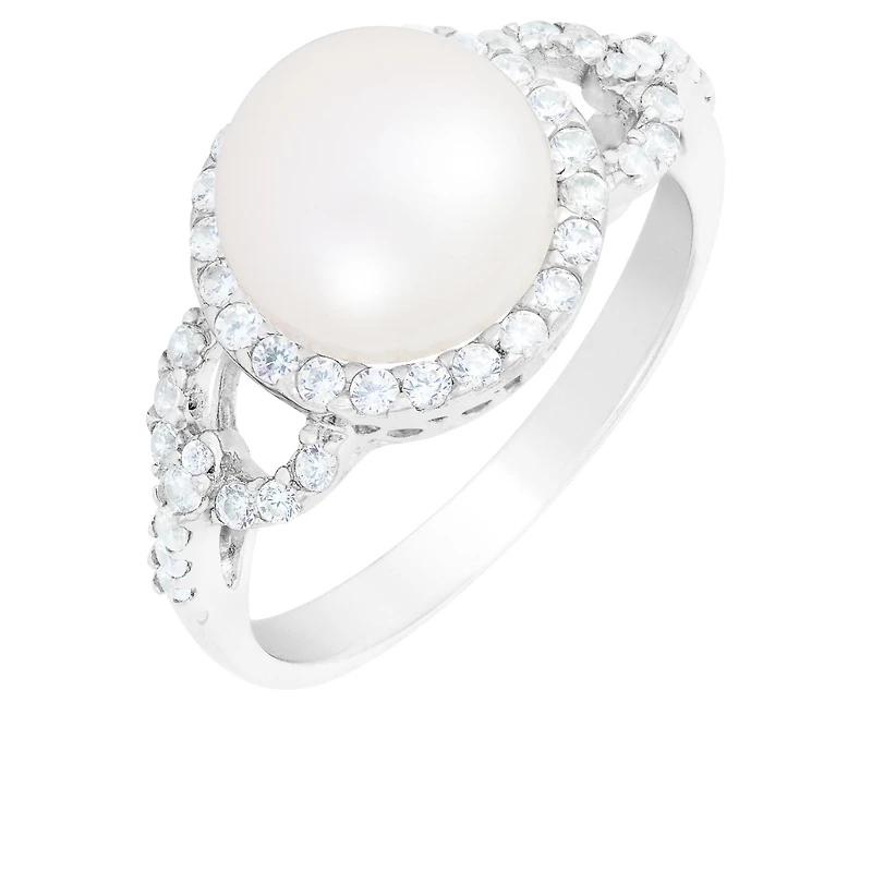 This elegant ring features a lustrous freshwater pearl accentuated by sparkling cubic zirconia stones. Crafted in sterling silver, it exudes timeless beauty and sophistication. The combination of the pearl's natural elegance and the brilliance of cubic zirconia creates a captivating and luxurious piece of jewellery.