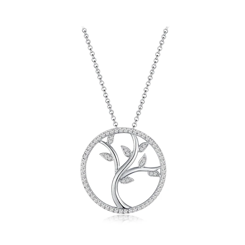 Sterling Silver Cubic Zirconia 19" Tree Of Life Pendant