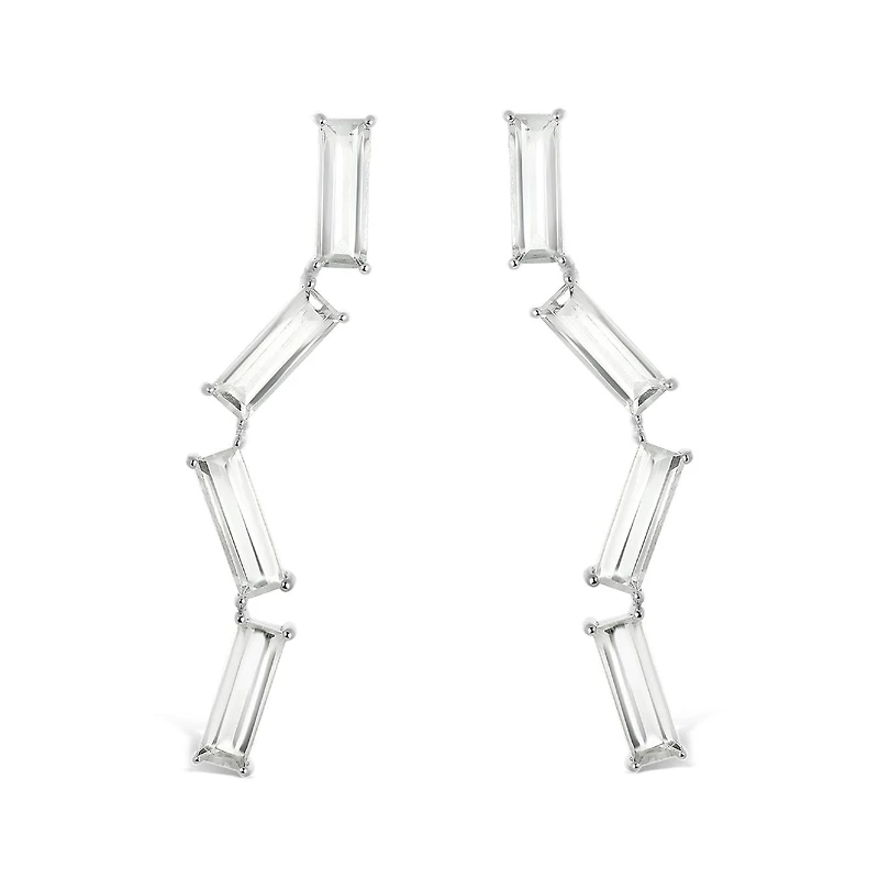 These gorgeous drop earrings are set in sleek sterling silver and feature gleaming baguette cut cubic zirconia's. These earrings are a lovely choice to suit all occasions. Add a touch of glamour to your life and buy today!