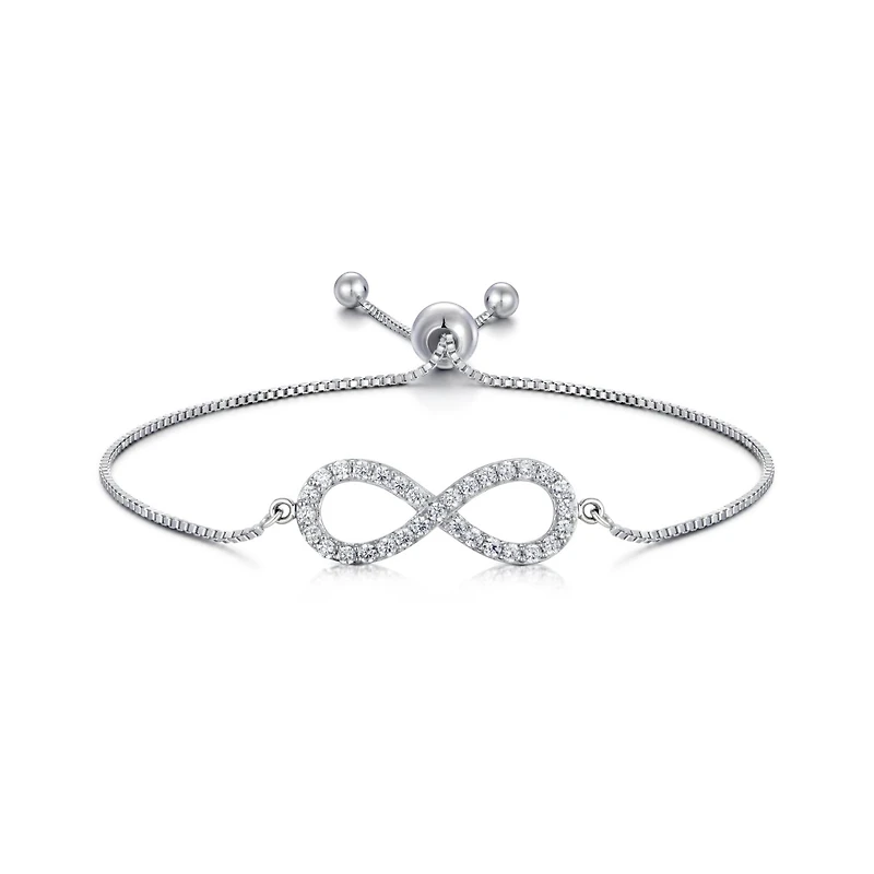Sterling Silver Cubic Zirconia Infinity Bolo Bracelet
