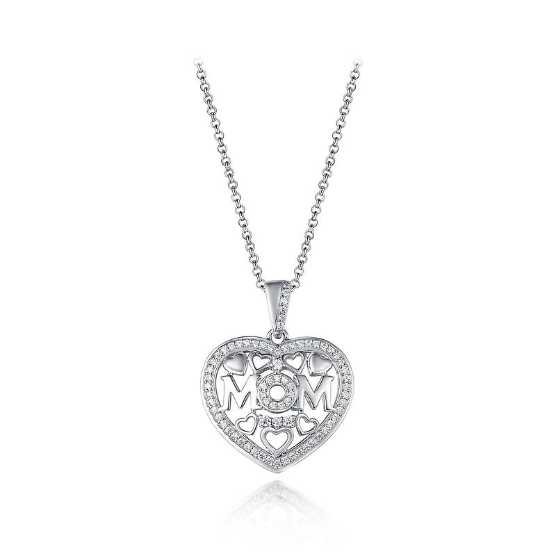 Sterling Silver Cubic Zirconia Mom Heart 19" Pendant