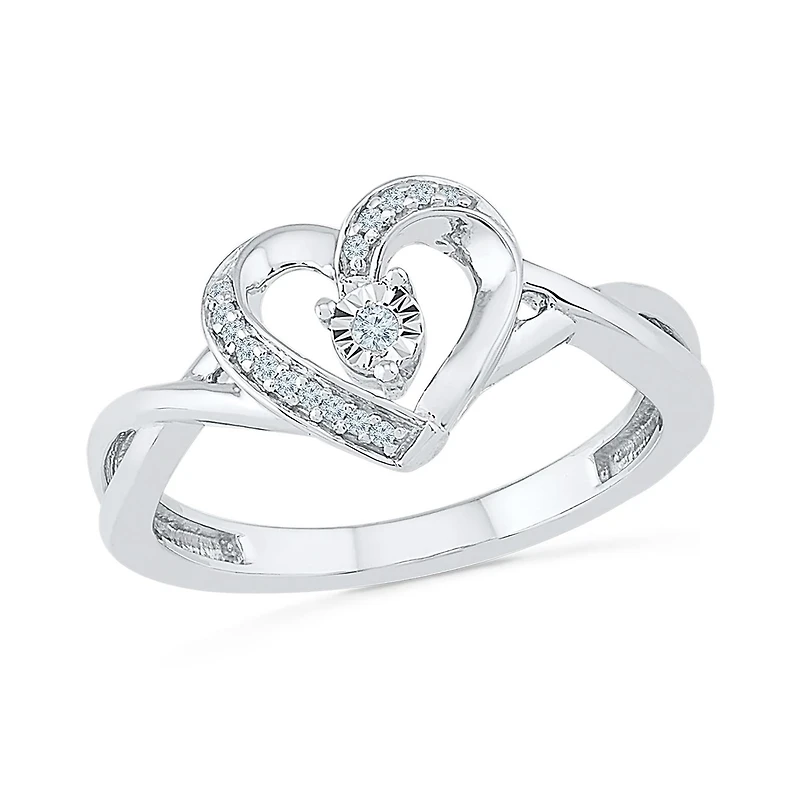 Elevate your style with the Sterling Silver Diamond Heart Ring. This exquisite ring is crafted from sterling silver, known for its timeless elegance and versatility. The centerpiece of this ring is a beautiful heart-shaped design, symbolizing love and affection. The intricate details and smooth curves of the heart create a visually stunning and romantic appeal.