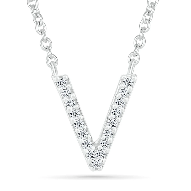 Sterling Silver & Diamond "V" Initial Necklace