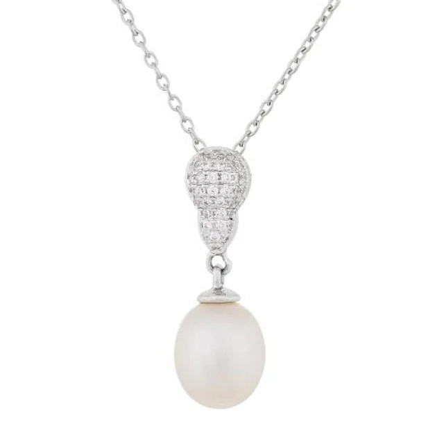 Sterling Silver Fancy Cubic Zirconia Cluster & 8-9mm Pearl Pendant