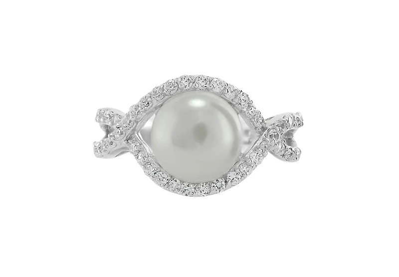 Showcase the perfect accessory with this stunning freshwater pearl ring. Set in swirls of sterling silver and sparkling cubic zirconia, you’ll look like a million bucks!