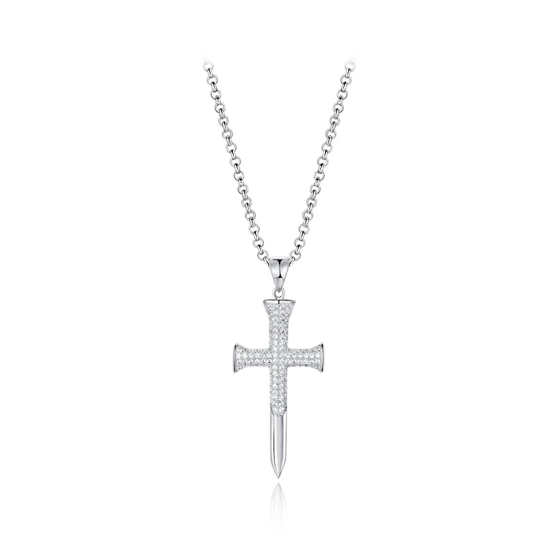 Sterling Silver Men's Cubic Zirconia Cross Pendant On Chain
