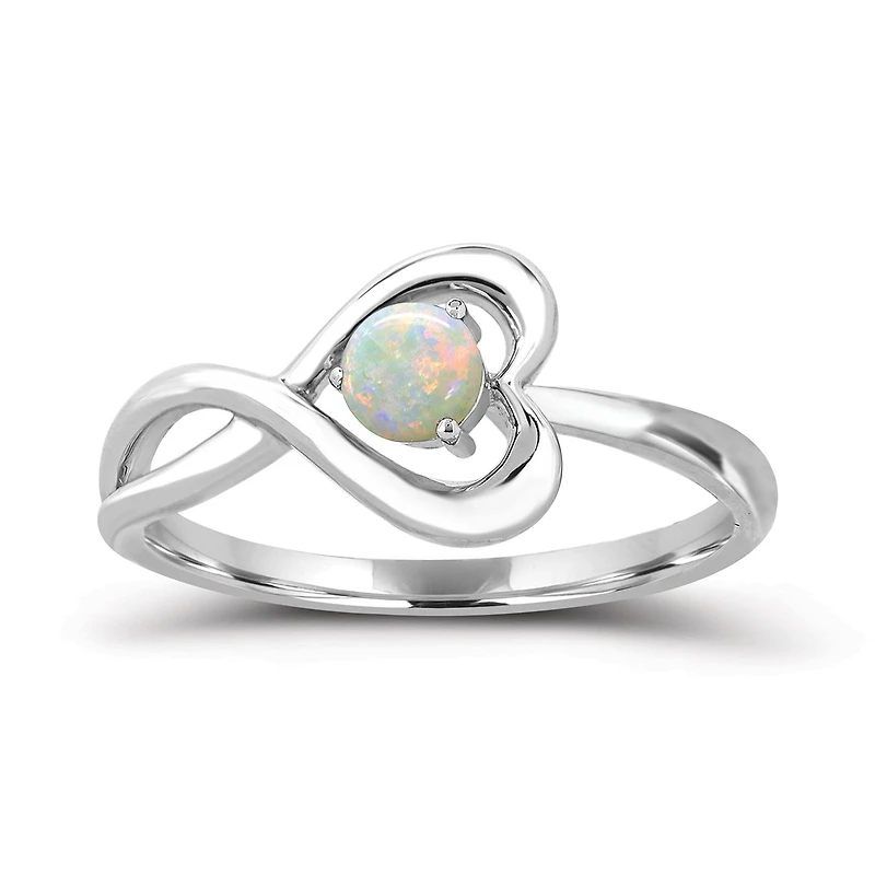 This beautiful sterling silver infinity heart ring is sure to become a favourite item in your jewellery collection. This item is perfectly adorned with a genuine opal which is the birthstone for October. It you are looking for something timeless, order this for yourself or someone you love today!
