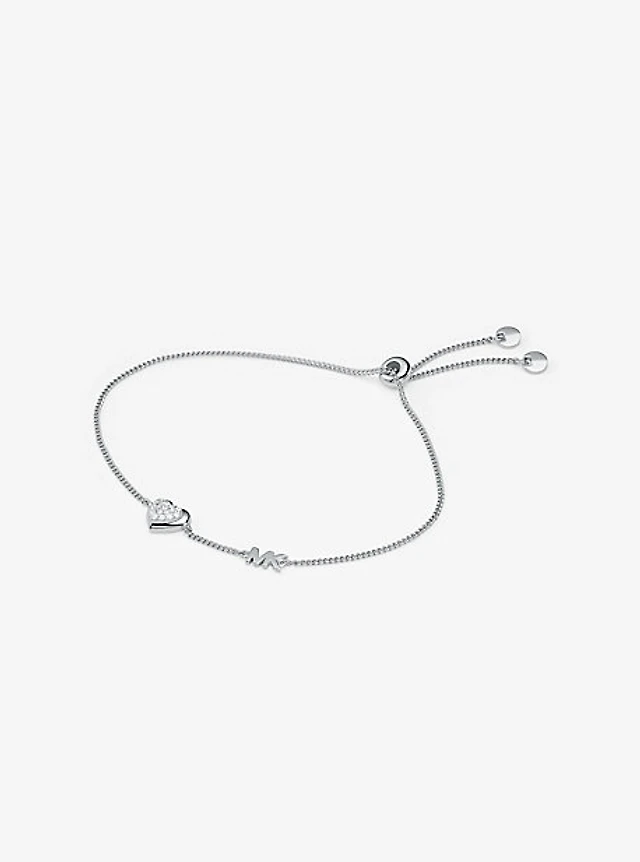 Cubic Zirconia Pave Heart Belcher Bracelet in Sterling Silver