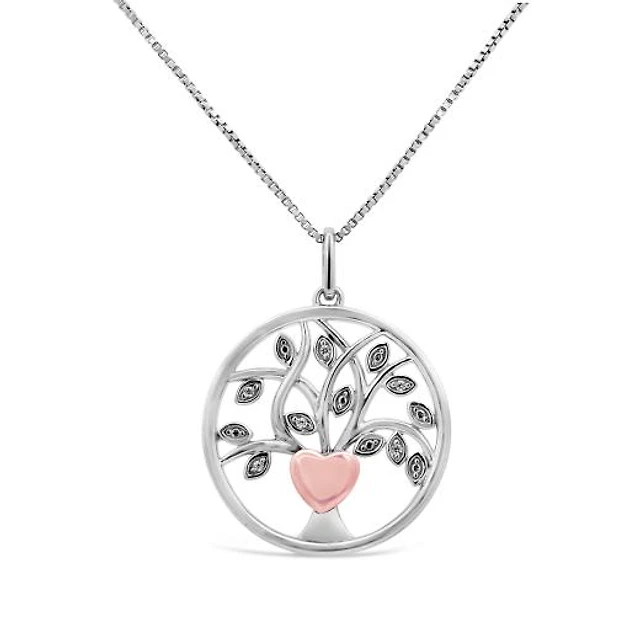 Sterling Silver & Rose Gold Plated Diamond Tree Of Life Pendant