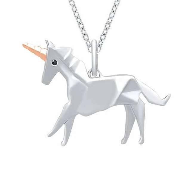 Sterling Silver Rose Gold Plated Diamond Unicorn Pendant