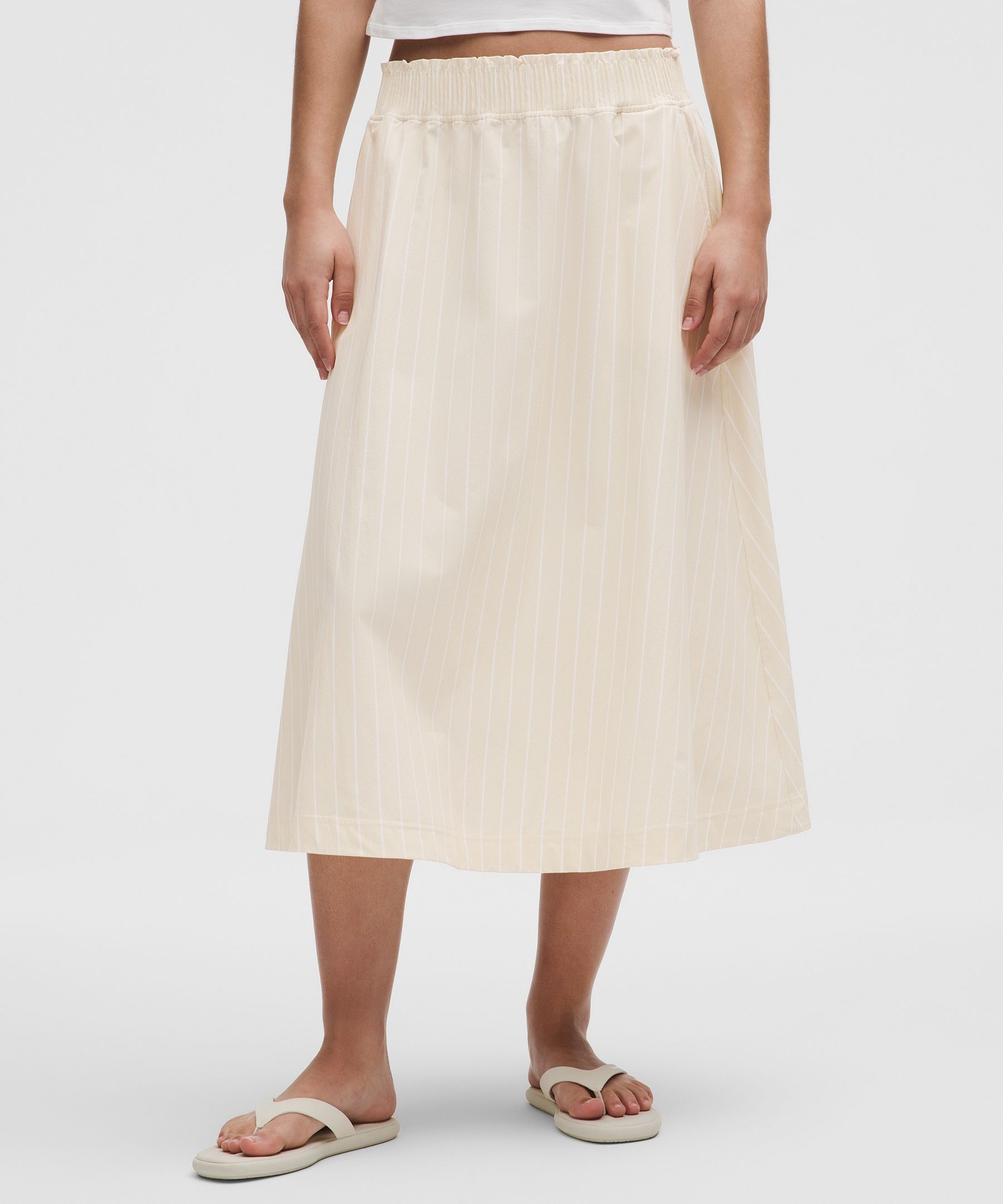 So, where to? Designed in travel-friendly stretch woven fabric, this A-line skirt has a flowy silhouette that goes with practically all of the tops you packed.