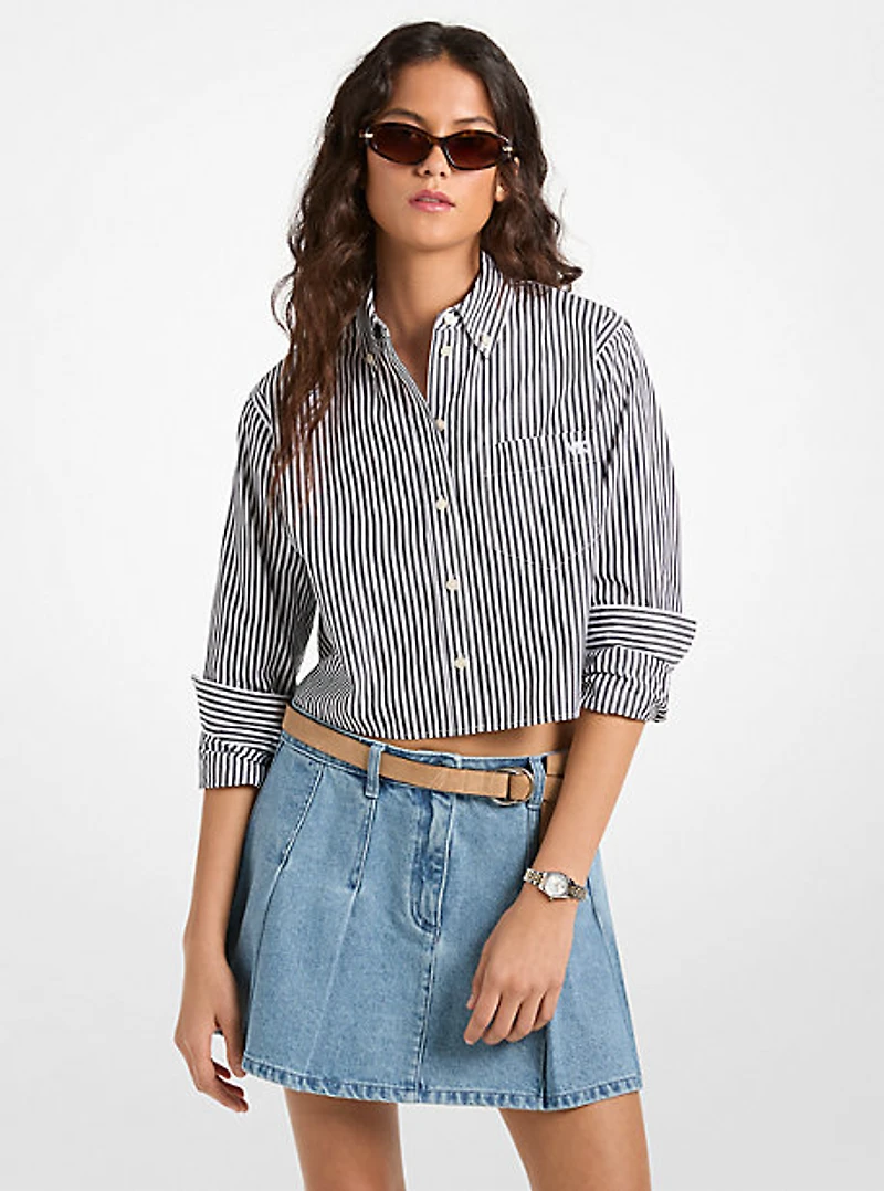 Striped Cotton Poplin Cropped Oxford Shirt