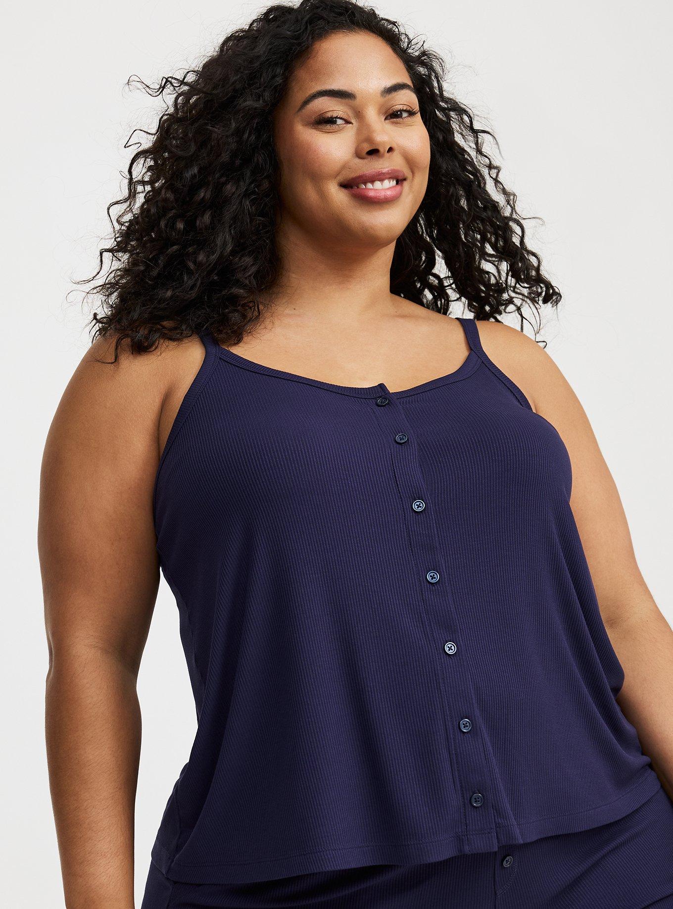 FIT Measures 35'' from shoulder (size 2). MATERIALS + CARE Super Soft knit fabric: An incredibly soft, versatile knit that hugs close to the body. Stretch level: Maximum. 95% rayon, 5% spandex. Machine wash cold. Line dry. Imported. DETAILS High scoop neckline. Sleeveless. Adjustable straps. Button front. Ribbed texture.