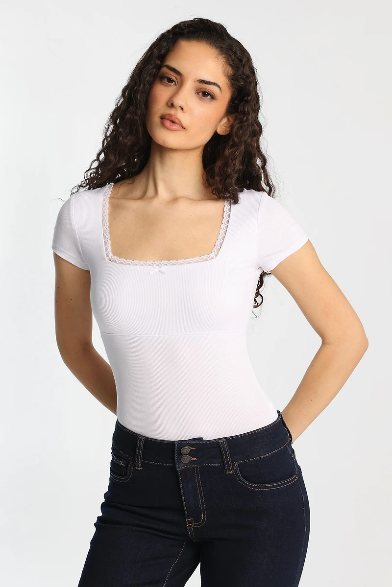 Super Soft Ribbed Short Sleeve Square Neck Bodysuit