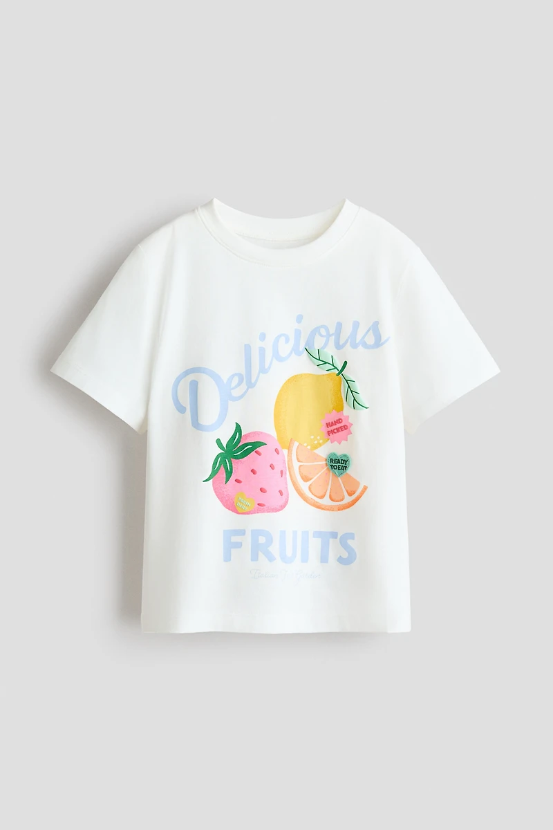 T-shirt in soft cotton jersey with motif at front. Round, ribbed neckline and short sleeves.