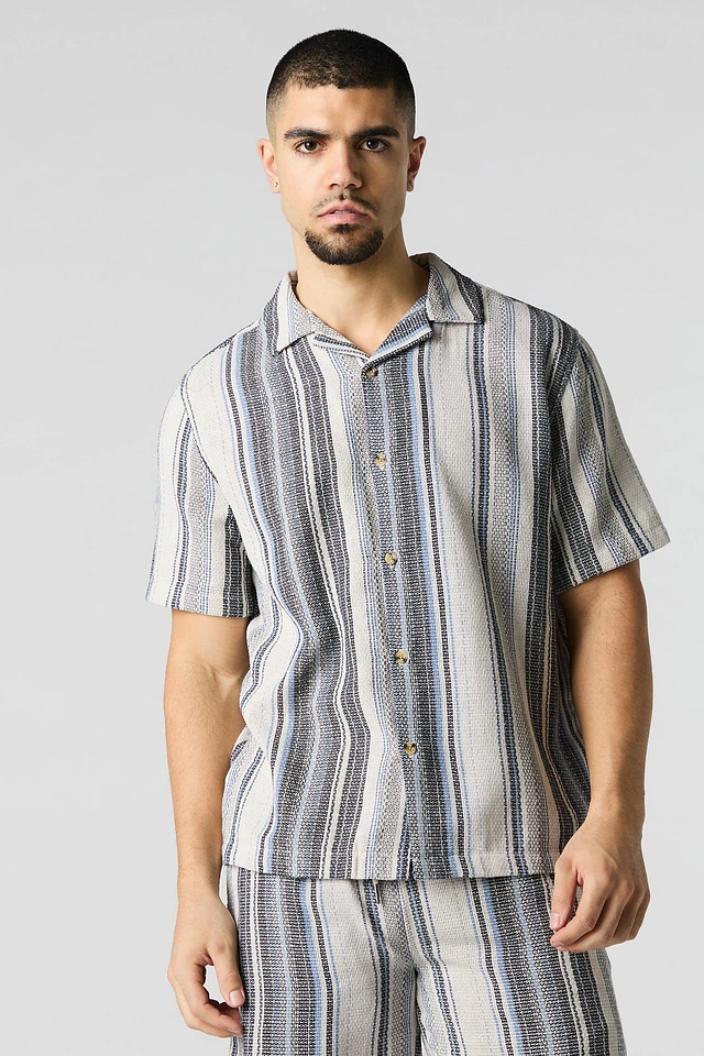 Textured Striped Button-Up Top