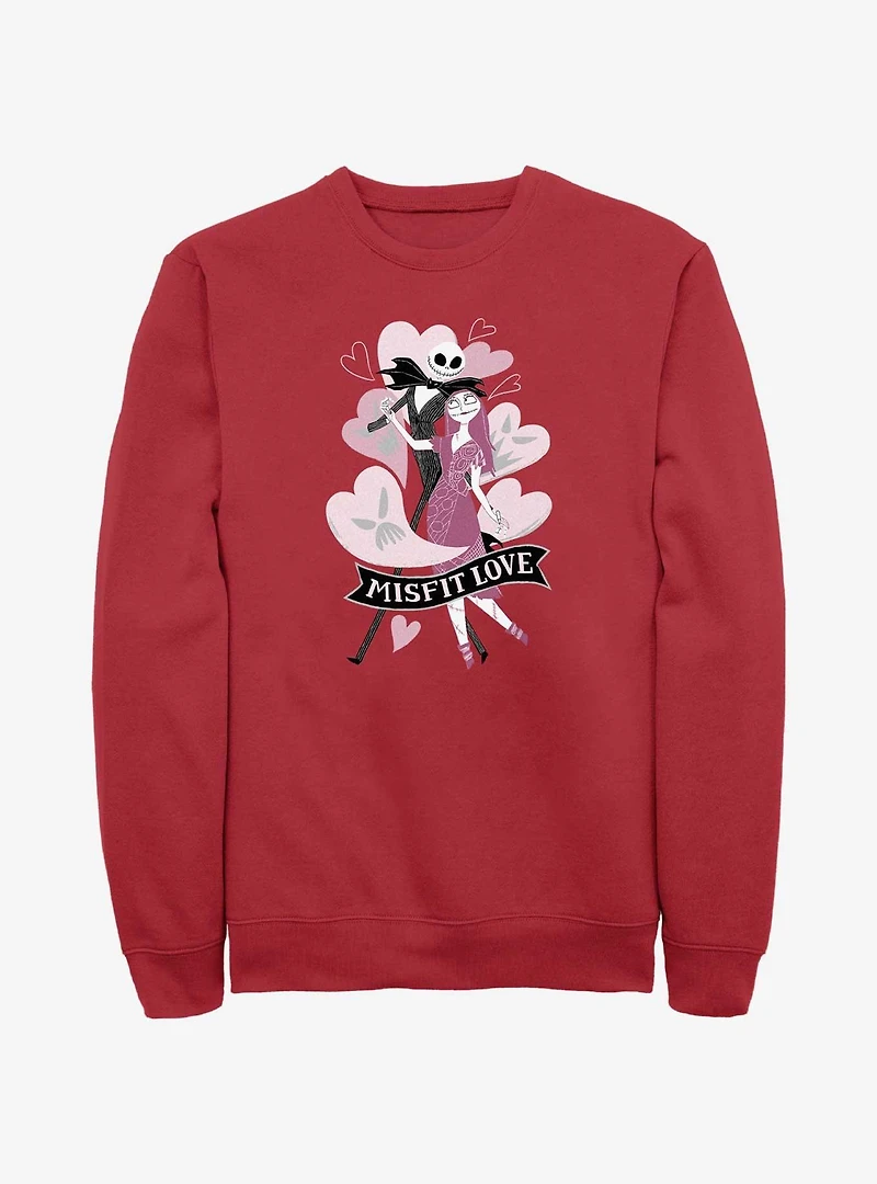 The Nightmare Before Christmas Jack & Sally Misfit Love Hearts Sweatshirt