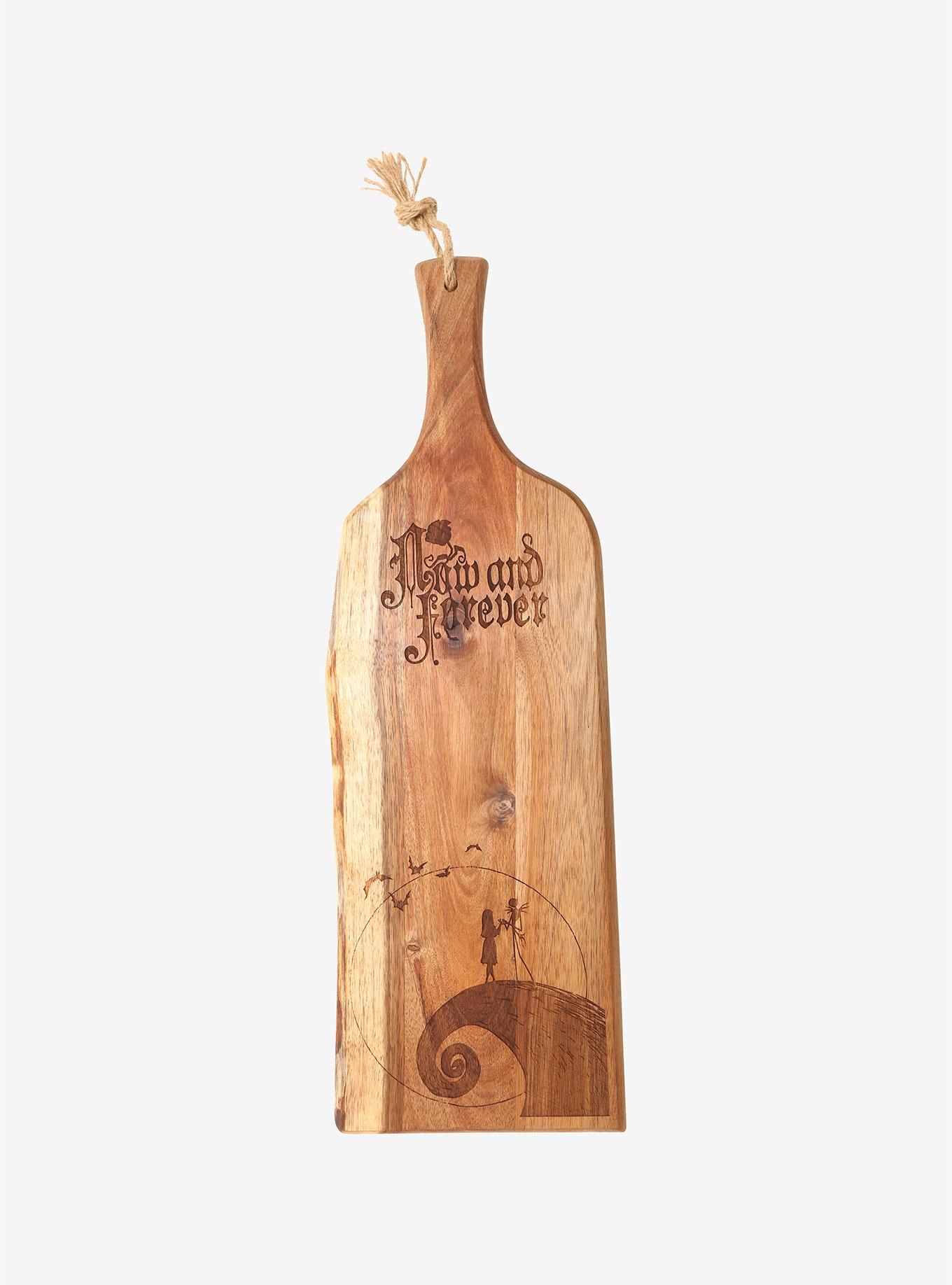 Where we can gaze into the stars, and sit together now and forever. Serve the finest meats and cheeses to your spooky friends with this wooden serving plank from The Nightmare Before Christmas . "Now and forever" verbiage is etched into the wood along with Jack and Sally standing on the hill in front of the moon.