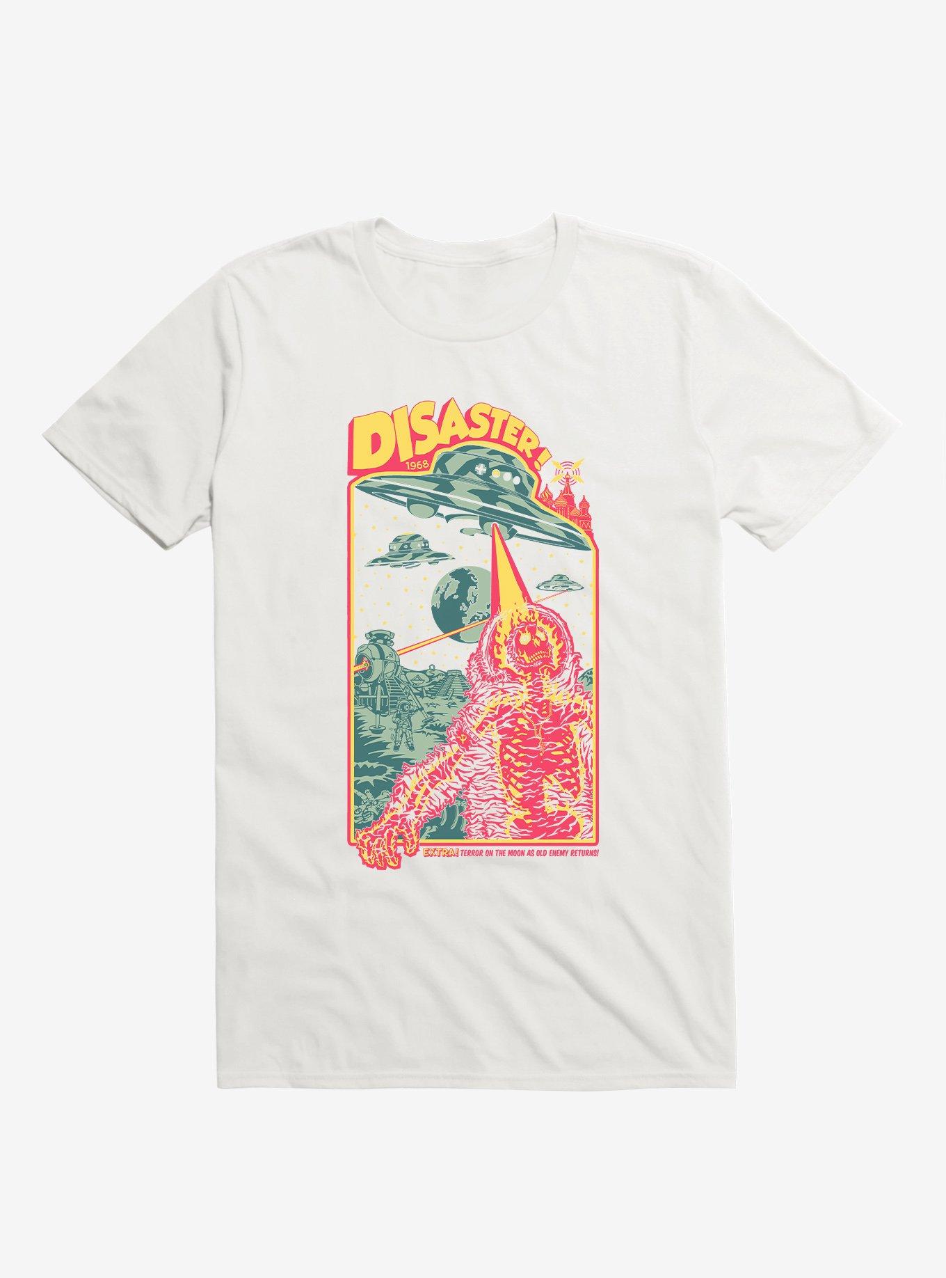 Disaster, 1968! Terror on the Moon as old enemy returns! This lightweight white tee features an action-packed scene, with laser beam-shooting UFOs, a burning figure, a Moscow skyline, and more! Officially licensed art from Mattias Lundblad.
