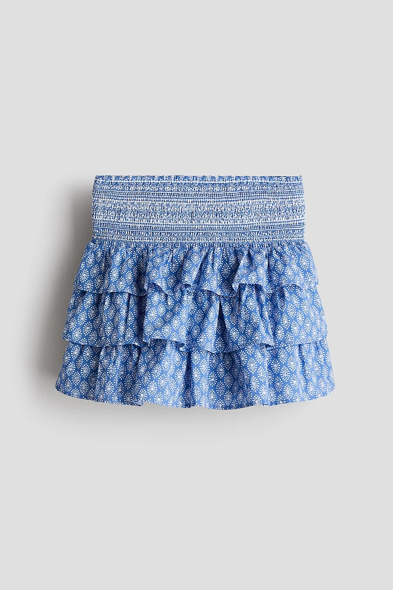 Tiered skirt in soft woven cotton. Wide, smocked waistband. Lined.