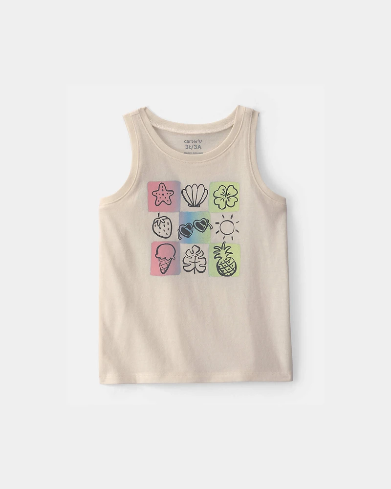 Toddler Girl Summer Icon Graphic Tank - Ivory