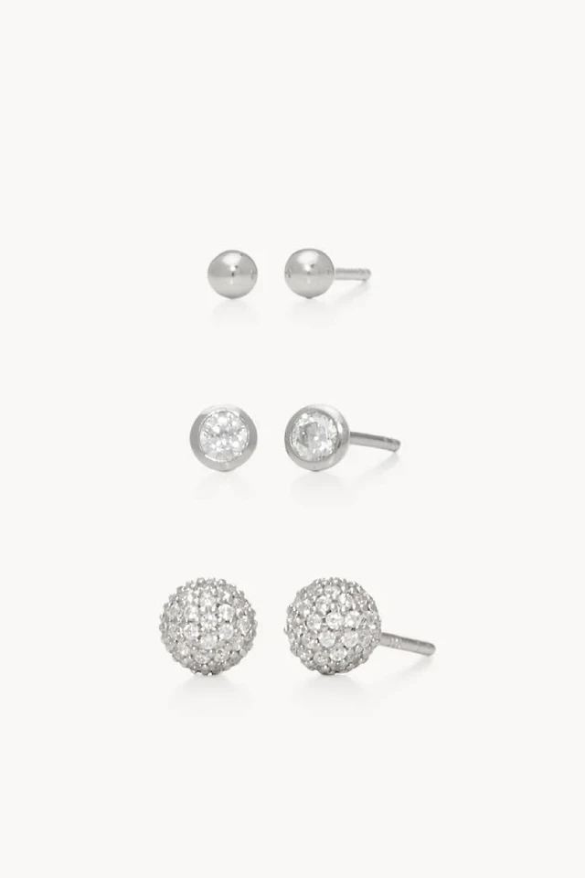 Triplet Stud Earrings Set - White