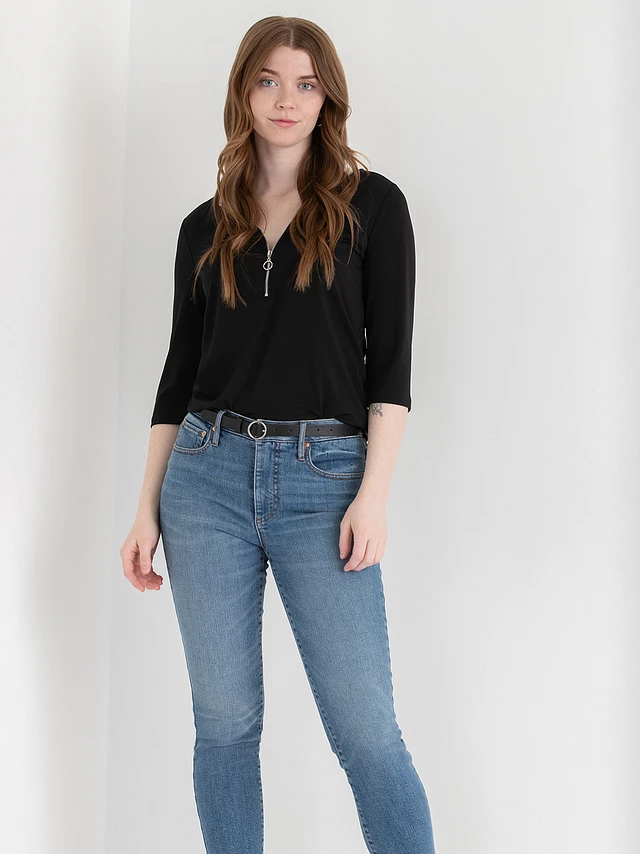Ribbed V-Neck Button-Up Long Sleeve Top