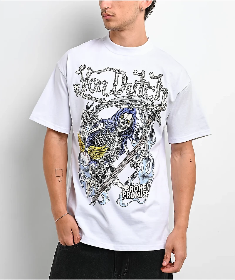 Von Dutch X Broken Promises Bare Bones White T-ShirtVon Dutch X Broken Promises Bare Bones White T-Shirt