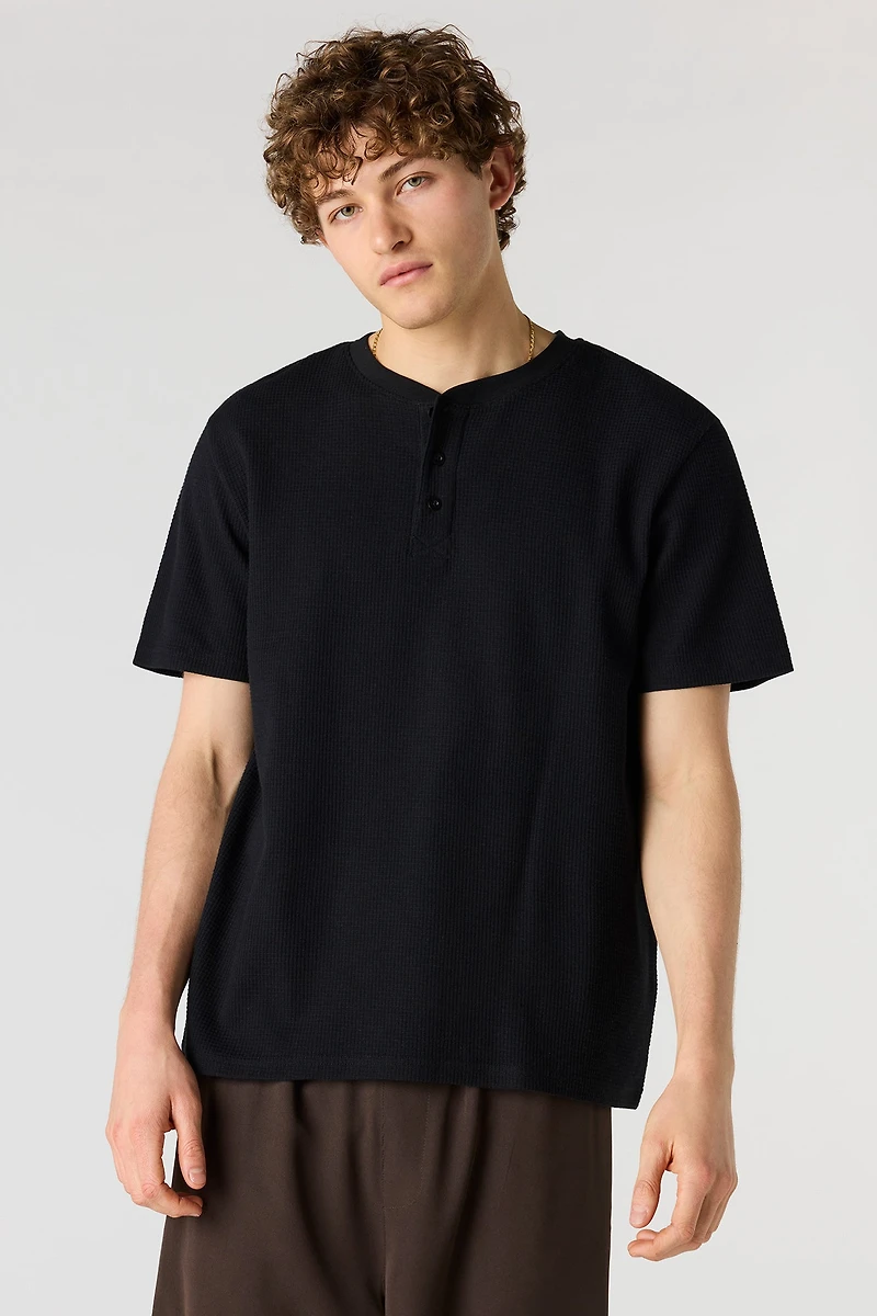 Waffle Knit Henley T-Shirt