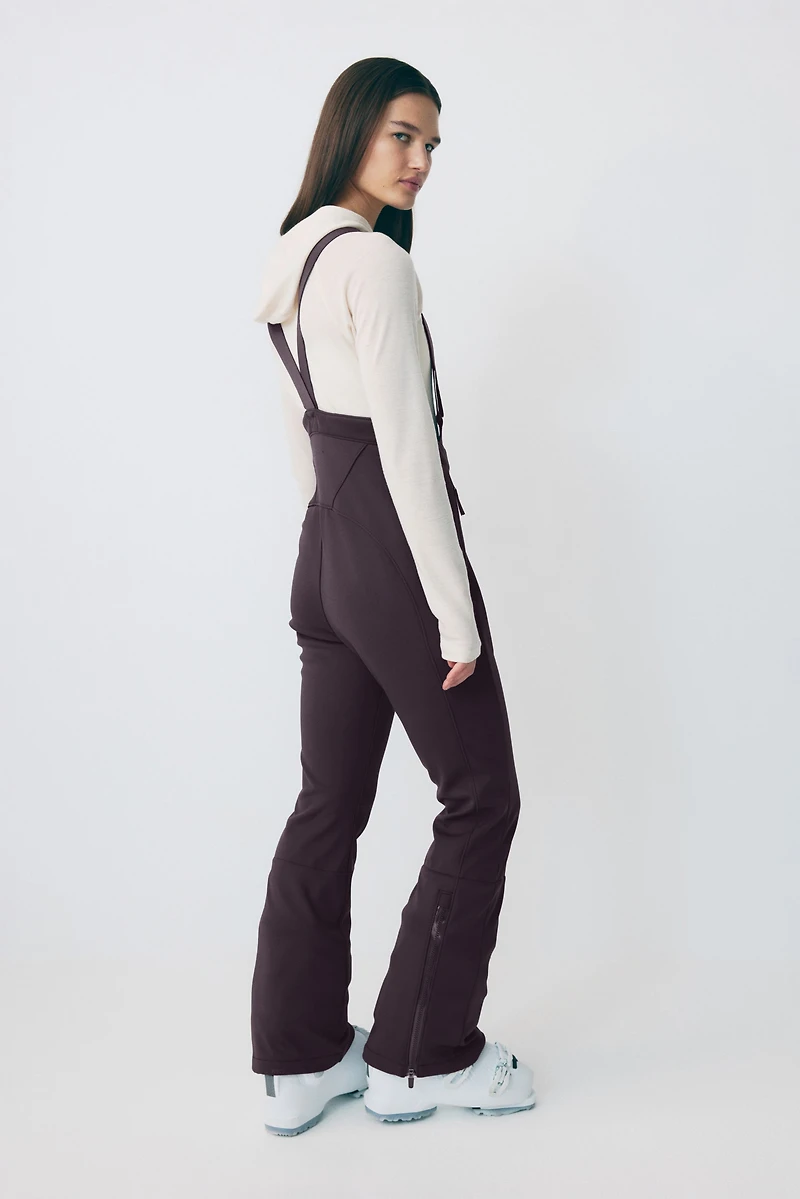 Slim-fit ski pants in breathable, windproof, and water-repellent functional fabric designed for protection from snow and wind. Adjustable, elasticized suspenders, high waist, and waterproof zipper at front. Side pockets with zipper for safer storage of valuables. Gently flared hems with a zipper and integrated snow gaiters with a snug fit around ski boots. Soft, brushed jersey inside for warmth.
