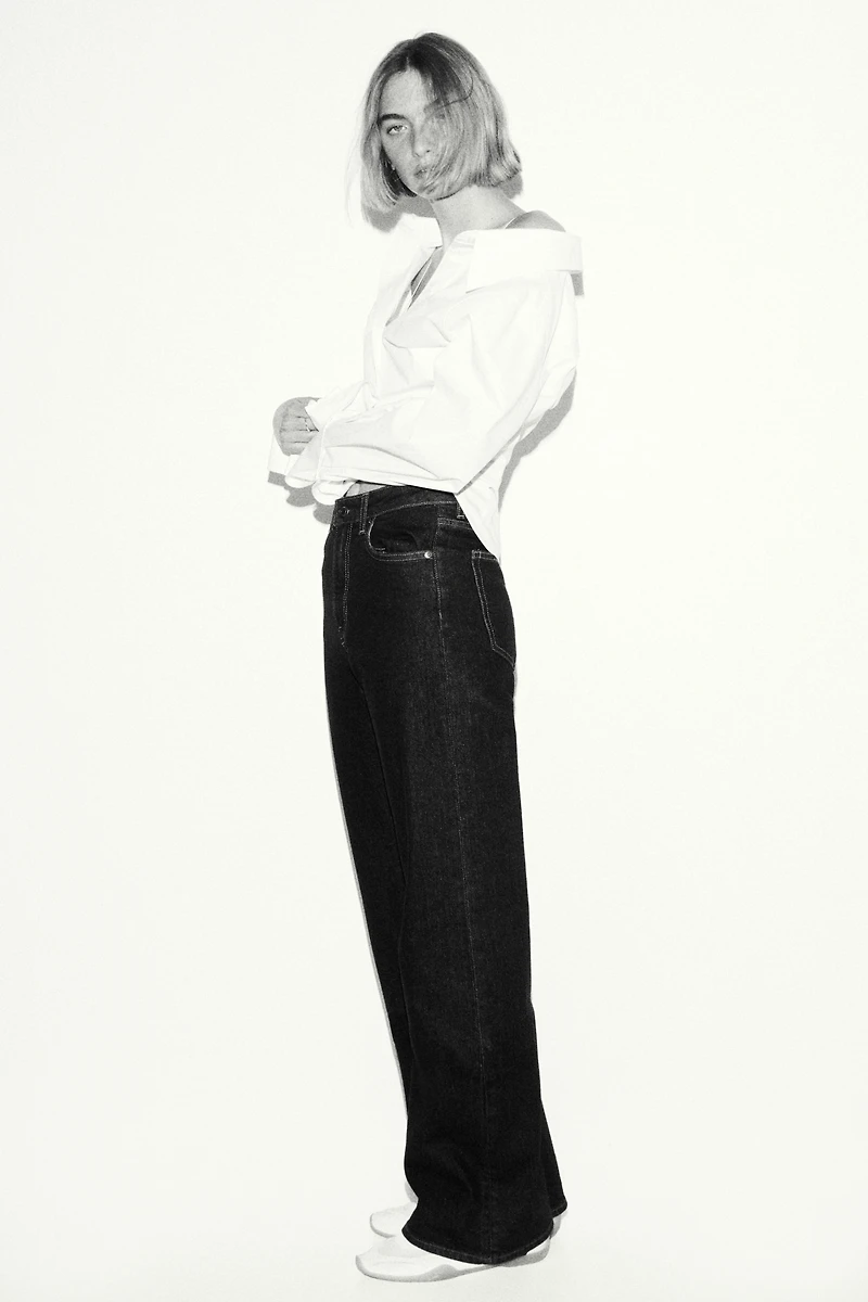 5-pocket jeans in cotton denim with gentle stretch for good comfort. Regular fit from waist to hip and wide cut from thigh to hem. High waist and zip fly with button. Wide, regular-length legs, designed to fall at top of foot with little or no stacking.