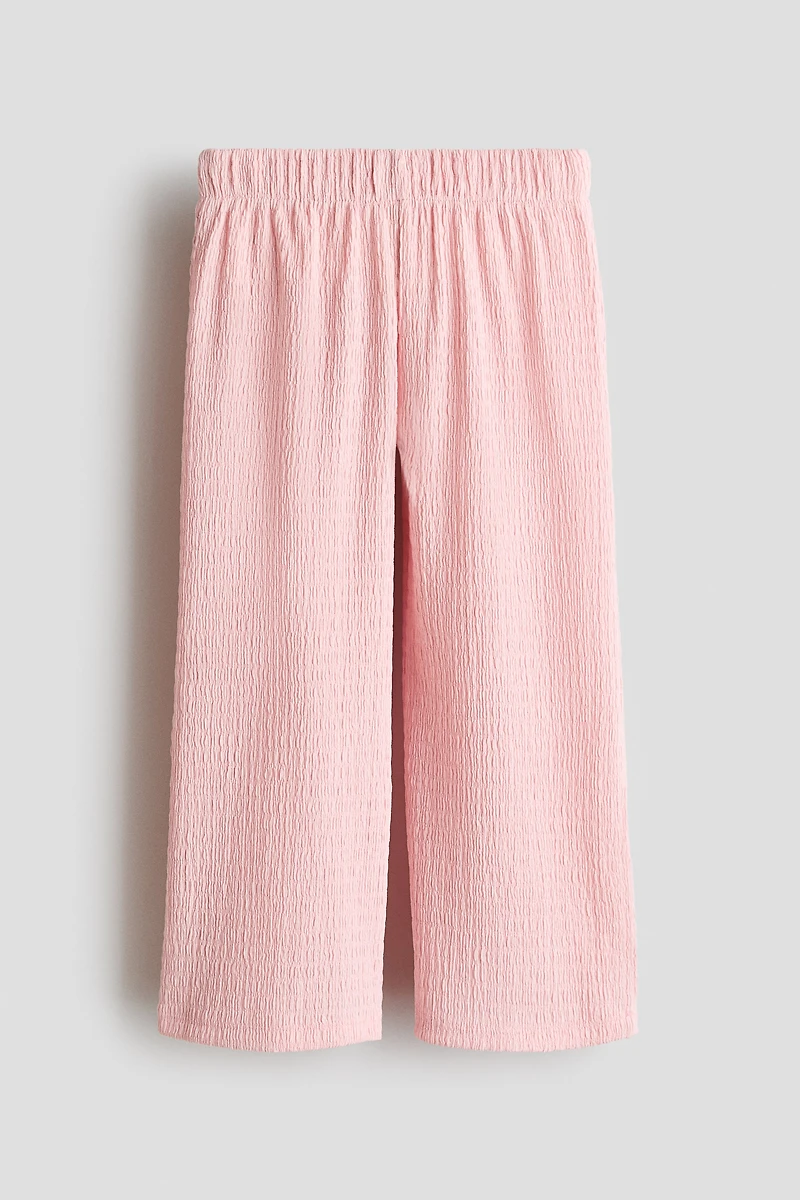 Pants in crinkled jersey with an elasticized waistband and wide legs.