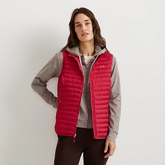 With its low profile, ultralight comfort, and high thermal efficiency, this down vest provides exceptional cross-seasonal versatility. A durable, water-repellent finish on the polyester shell causes moisture to bead and roll off. Premium Down insulation delivers unmatched warmth. Models shown are 5'9" to 5'11" tall, wearing size S/4 or L/12.