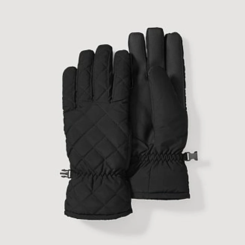 Keep your hands warm and cozy all winter. These gloves feature ThermaFill insulation as well as 650 fill power premium down for extra warmth. The shell is water-repellent, and the elasticized wristband shields your hands from the elements.