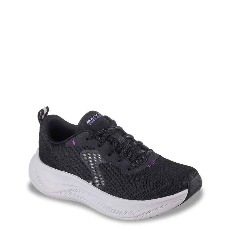 Float through your day with these women's Skechers Skech Cloud Smooth Wave black/lavender sneakers. Crafted with a lightweight engineered mesh upper, these machine washable sneakers feature haptic overlays that add structure without bulk. A Skechers Air-Cooled Memory Foam® insole cushions your foot with responsive relief, while the well-cushioned midsole offers a gentle lift backed by a just-right heel. A flexible traction rubber outsole ensures grip across varied surfaces. Also, these running sneakers have 100% vegan materials for eco-consciousness.
