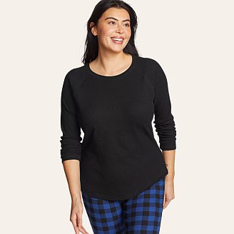 Eddie's wife, Christine "Stine" Bauer, created the original line of women's clothing at Eddie Bauer. Our waffle-knit, crewneck sleep shirt reflects her style, a mix of unquestionable quality, absolute comfort, and attractive design. The soft cotton/polyester/spandex is just the right touch at the end of a long day, or at the start of a new one. Models shown are 5'9" to 5'11" tall, wearing size S/4 or L/12.