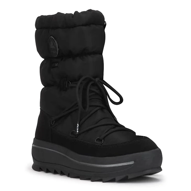 - Nylon upper ad vegan nubuck midguardBungee lace closureSide zip closureRound toeWaterproofComfort rated to -30°C/-22°FFaux sherpa liningTextile (100% polyester) footbedRemovable ultralight insolePU midsole7½" shaft height, 14" boot circumferenceThermal rubber platform traction lug soleOnline only