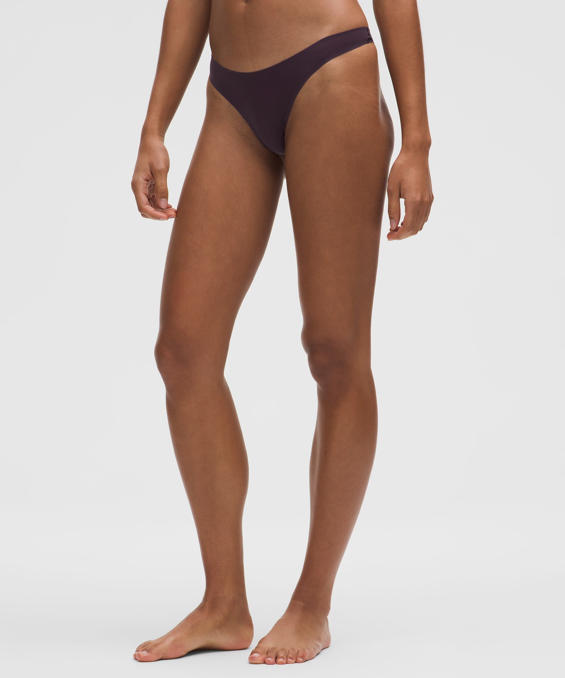 The next best thing to wearing nothing. Made from a peach-fuzz soft version of our Nulu™ fabric, this dipped-front thong adjusts to sit high or low on your hips.