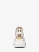 The zuma trainer goes for bold. Defined by exaggerated rubber soles, they feature a sporty mix of smooth and metallic mesh panels. For an unexpected pairing, wear them with an oversized blazer and pant set.
